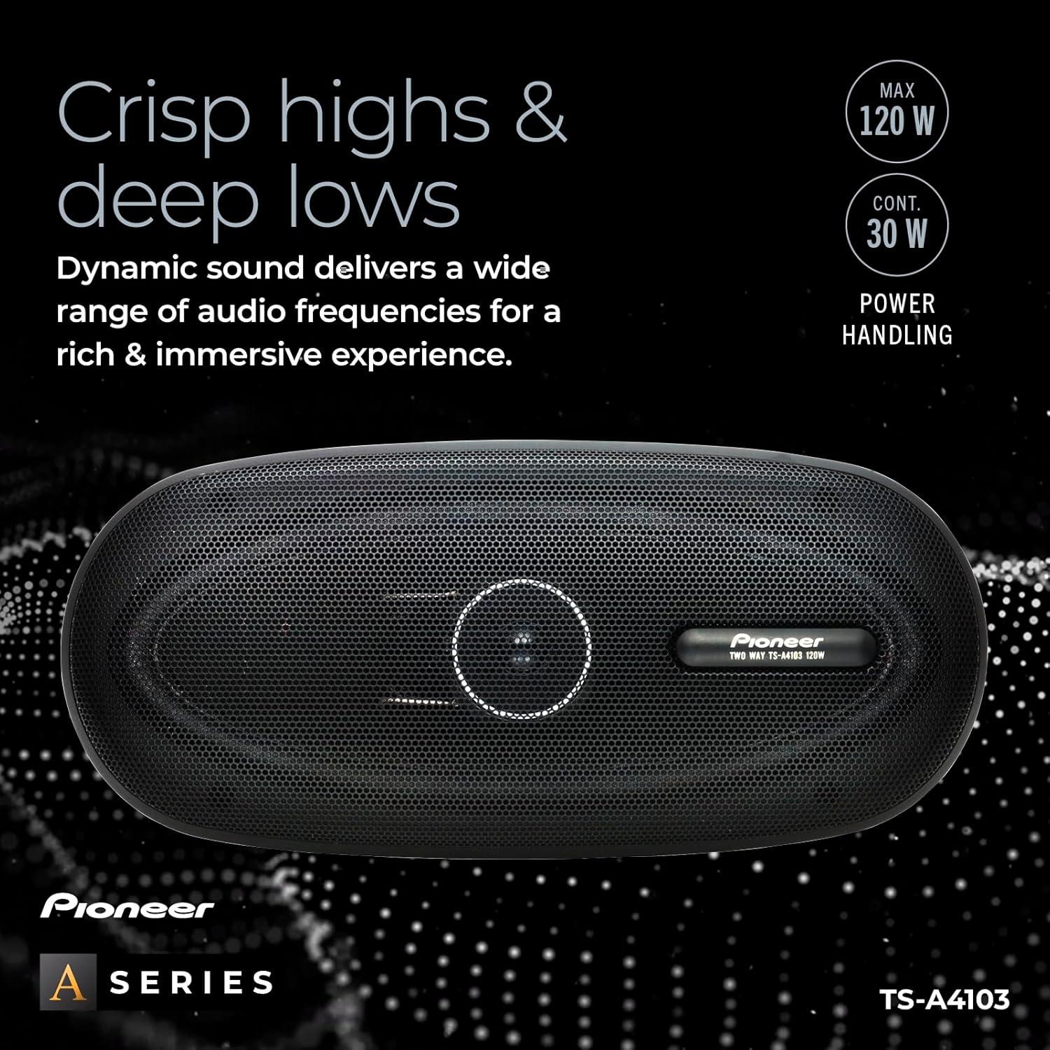 PIONEER A-Series TS-A4103 4” x 10” 2-Way Speakers (Pair) – 120W Max, Balanced Sound + Smooth Treble, Enhanced Bass, Great Stock Replacement