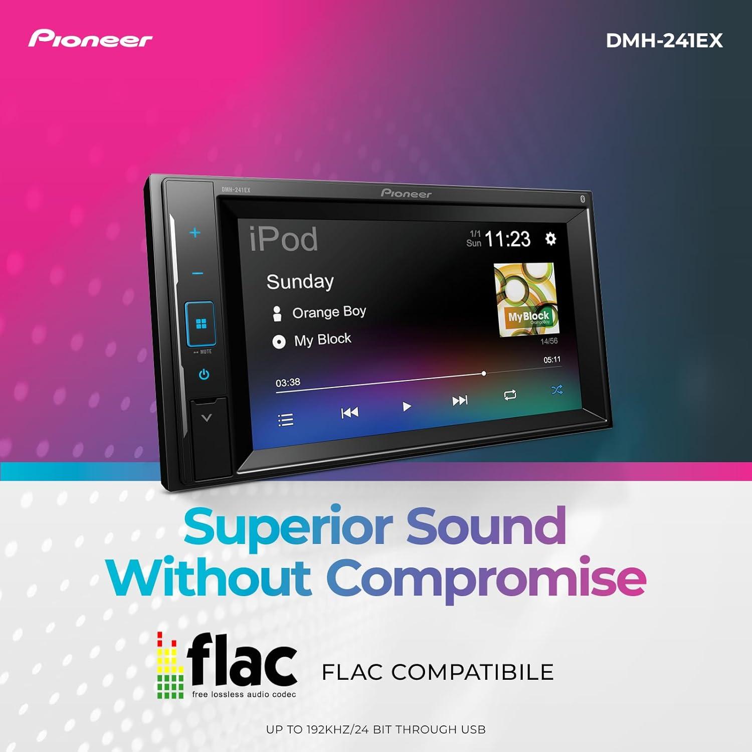 Pioneer DMH-241EX 6.2″ Resistive Touchscreen, Double Din – Bluetooth, Backup Camera, AM/FM Radio, USB, FLAC Playback, Short Chassis, 13-Band EQ, 50W x 4 Output(DMH-241EX)