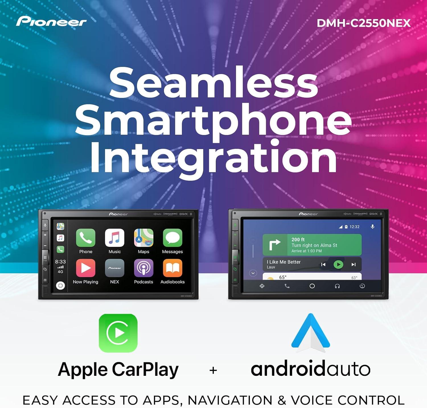 Pioneer DMH-C2550NEX 6.8″ Capacitive Touchscreen, Modular Chassis – Wired Apple CarPlay & Android Auto, Amazon Alexa, Bluetooth, Backup Camera, FLAC, Short Chassis, Hi-Volt RCA