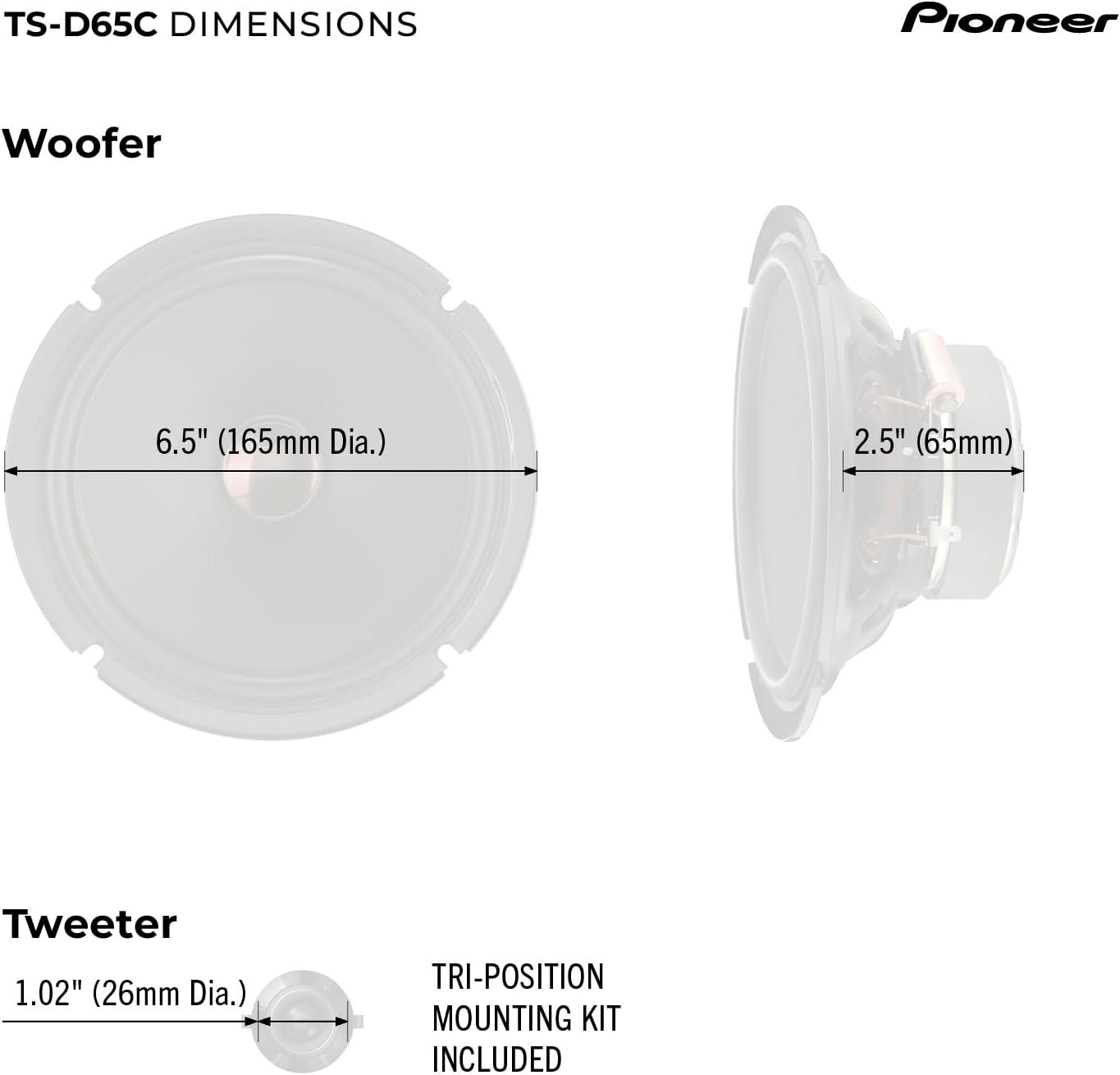 Pioneer F-Series TS-F1634R 6.5” 2-Way Speakers (Pair) – 200W Max, Balanced Sound + Smooth Treble, Great Stock Replacement, High-Efficiency Speaker Designed for OEM Power(6.5″ Component – 270W)