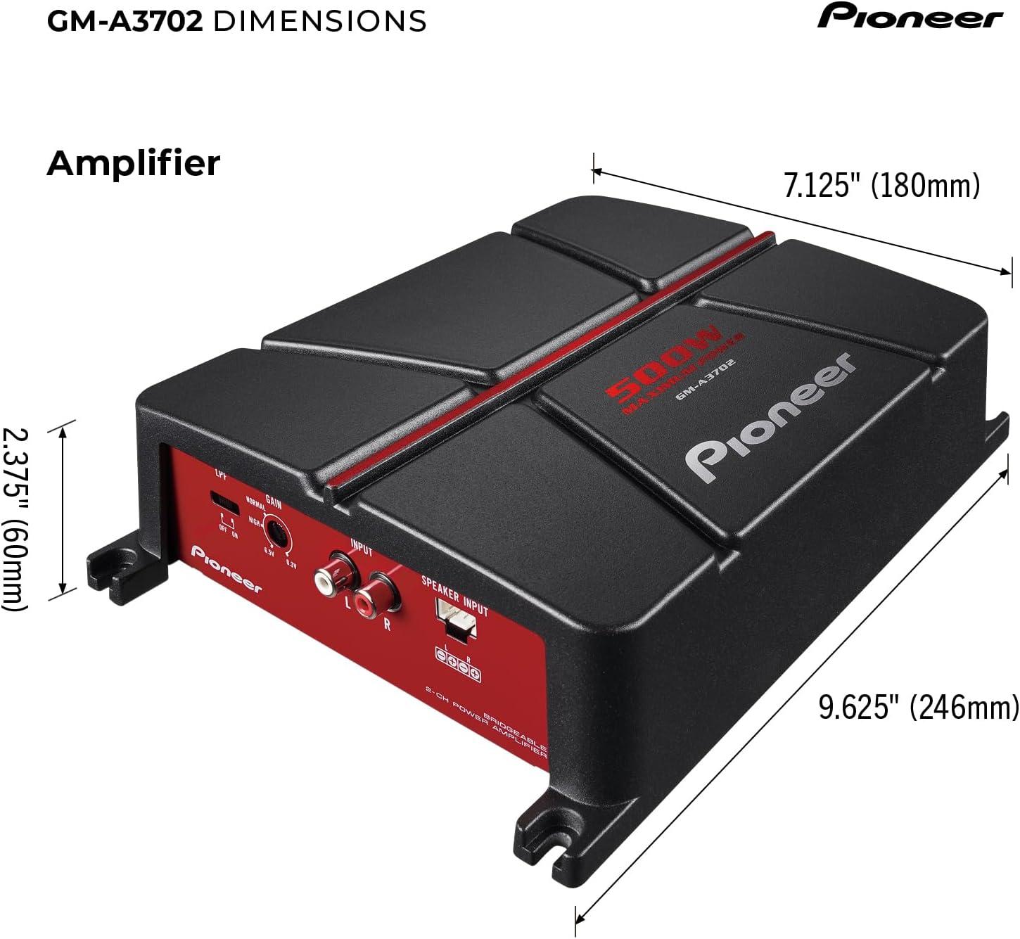 Elevate your in car audio experience with the Pioneer GM-A4704 4-channel Class A/B amplifier. With a maximum power output of 520 watts, it delivers dynamic and impactful sound that will enhance your ride. This Pioneer amplifier powers a pair of speakers with 40 watts RMS each, delivering a significant jump in power over your car radio alone. Boasting a Class A/B design, this car amplifier balances efficiency and performance, ensuring optimal power usage without excessive heat generation. Experience crystal-clear audio with minimized crossover distortion, preserving the integrity of the source signal for high-quality sound reproduction. Designed with variable high and low-pass filters, enhance your ride and tailor your listening experience based on the genre and type of music you’re listening to. With automatic signal sensing and turn-on, your amp will turn on when the receiver is turned on and automatically select the proper input signal mode. Transform your car audio experience with this compact yet powerful amplifier today, and immerse yourself in a world of elevated sound quality.