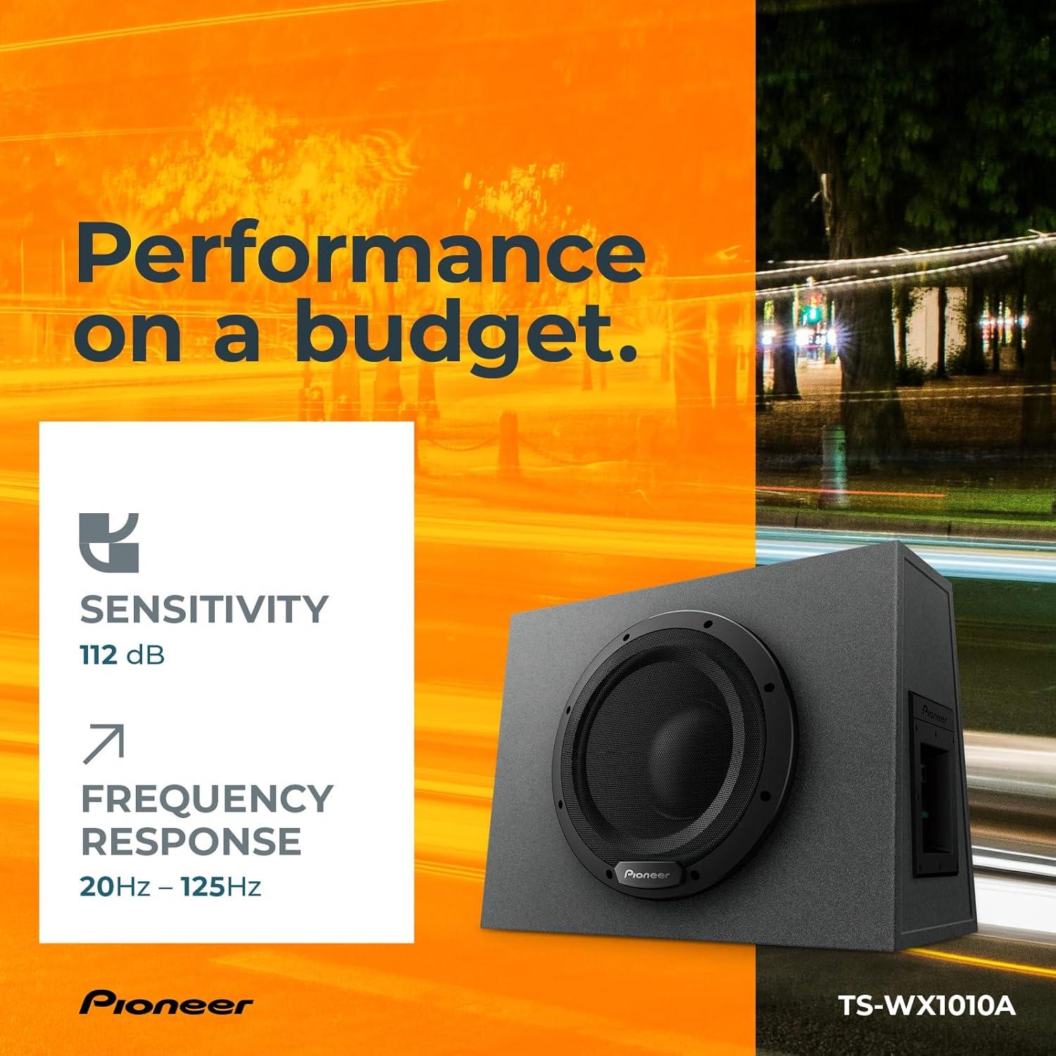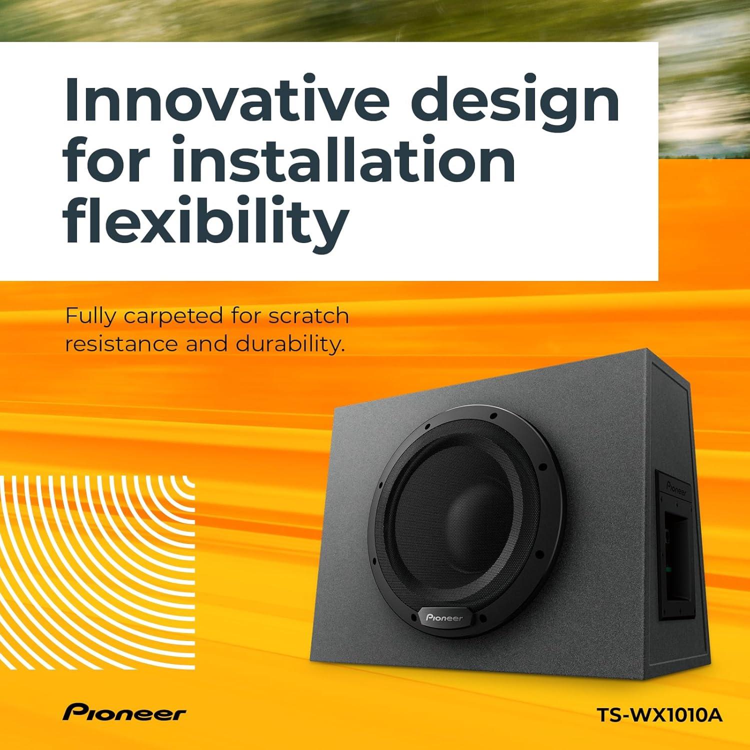 PIONEER TS-WX1010A 10” Sealed Active Subwoofer with Built in Amplifier, 1100 Watts Max Power Sub, Variable Bass Boost, Flexible Installation