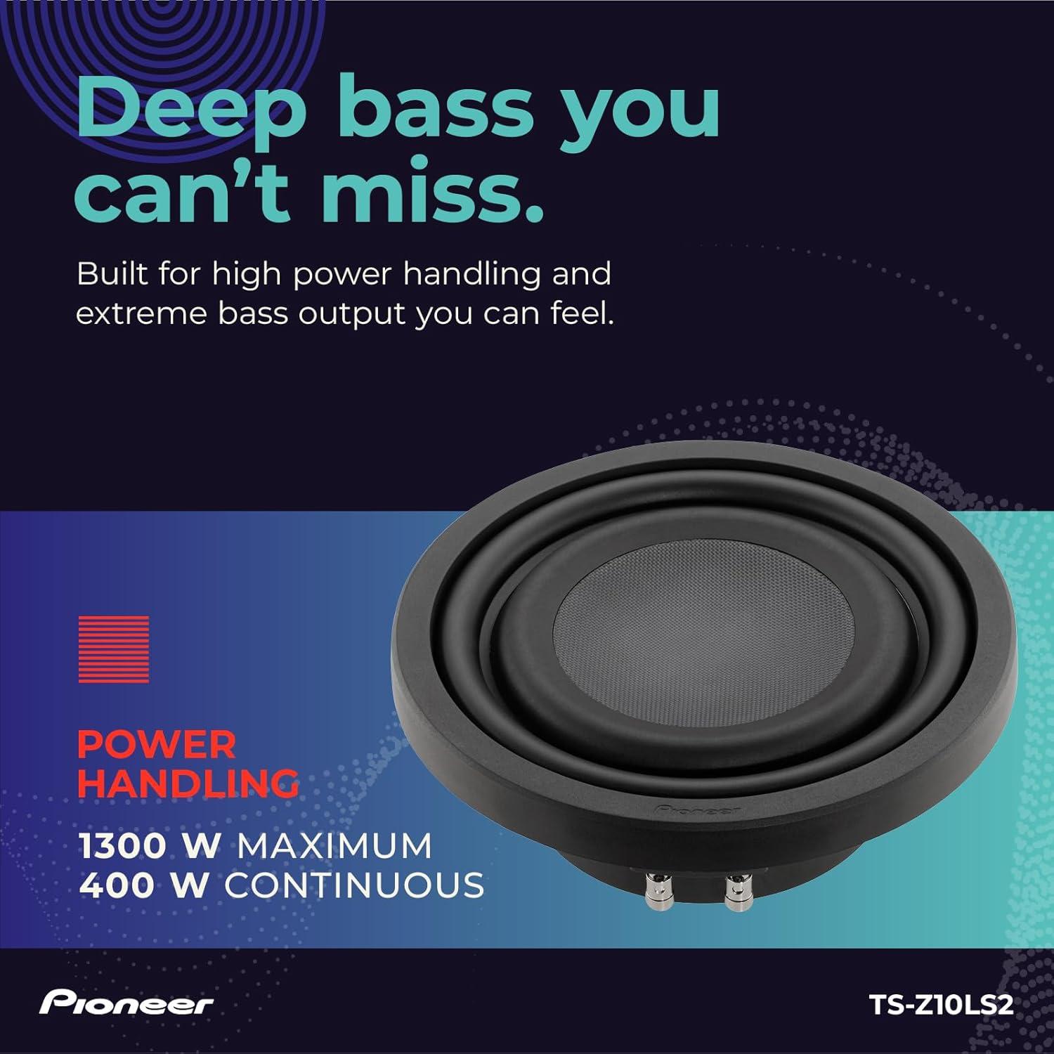 Pioneer Z-Series TS-Z10LS4 10” Premium Subwoofer – 1300W Max, Shallow-Mount Design, Deep Bass in Tight Spaces, Compact, Slim, Truck/Car Subwoofer(TS-Z10LS2 – 10″ – Single 2 Ohms)